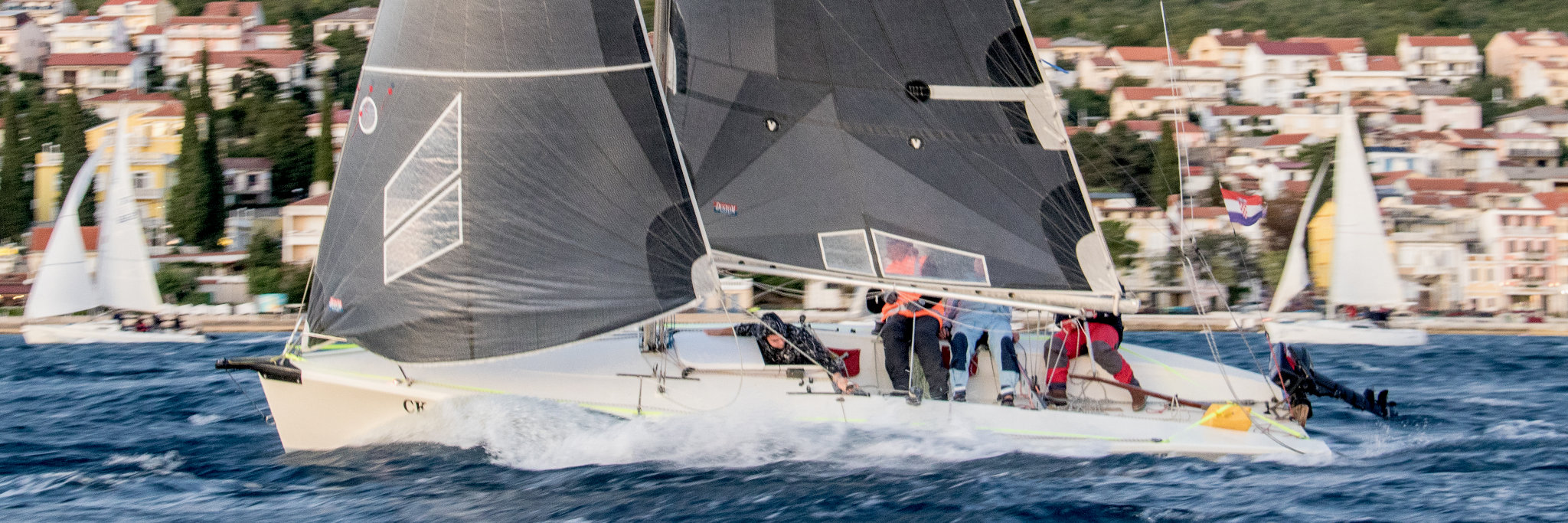 Our race sails are proven state of the art winning machines. We make them for your specific needs without any compromise. We are listening to your wishes, designing them with our experience and knowledge using the most advanced tools and technologies, producing them taking care of every tiny detail. Each our race sail in the design phase is pushed through our fluid-structure interaction (FSI) analysis, and results are compared to already analyzed and built sails. If sail design satisfies needed goals, then sail goes into production. Our racing sails are light, smooth, have excellent shape-holding, and reliable.